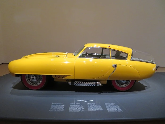 Tras su lanzamiento, este -y no otro, ya que sólo se fabricó esta unidad- fue el coche más veloz del planeta, al lograr alcanzar los 243 km/h en 1953. Su carrocería, de zaga encapsulada e interminable capó, fue diseñada en la factoría española de Enasa; si bien se adoptaron soluciones futuristas propuestas por estudiantes de diseño, como esa característica luneta trasera abovedada. El original Pegaso fue obra del exingeniero jefe de Alfa Romeo, Wifredo Ricart. Se presta única situación admirar en el Guggenheim el Cúpula, ya que constituye la vuelta a España del singular ejemplar desde su marcha en 1953.